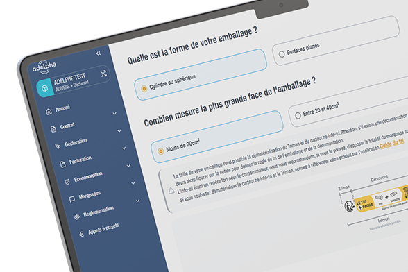 Pour simplifier la création de ce marquage réglementaire, Adelphe a développé Easy Info-tri, une solution 100 % digitale, exclusivement réservée à nos adhérents. Cet outil permet de générer en quelques clics, un marquage Info-tri conforme aux exigences des pouvoirs publics pour les emballages ménagers et les papiers graphiques.