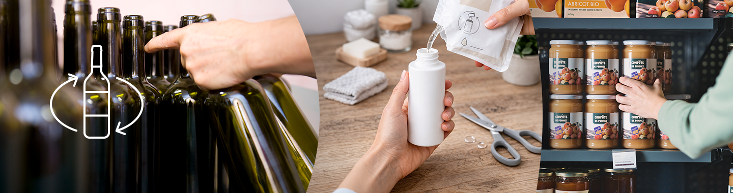 Adelphe soutient leur développement en accompagnant ses adhérents, et les acteurs engagés comme le Réseau Vrac et Réemploi et France Consigne.